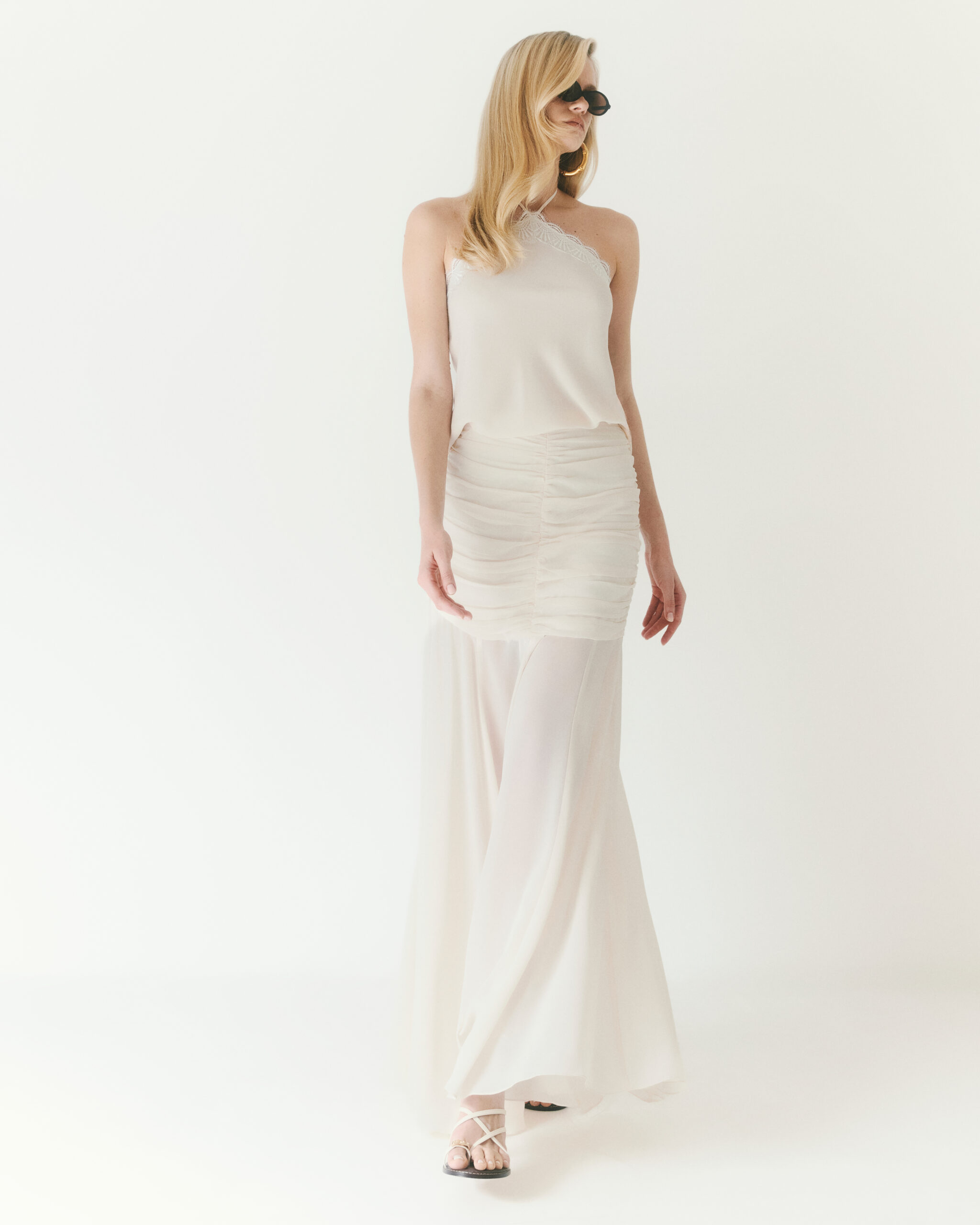 Blusa com detalhe de renda e ponteiras.