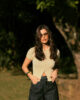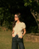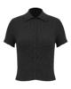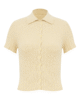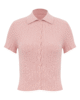 Blusa tricote canelada com gola e botões com abertura frontal manga curta.