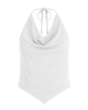 Blusa em viscose frente única decote degage com amarração na nuca e um fita com ponteiras nas costas.