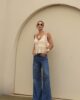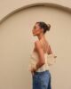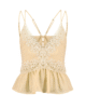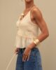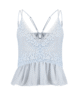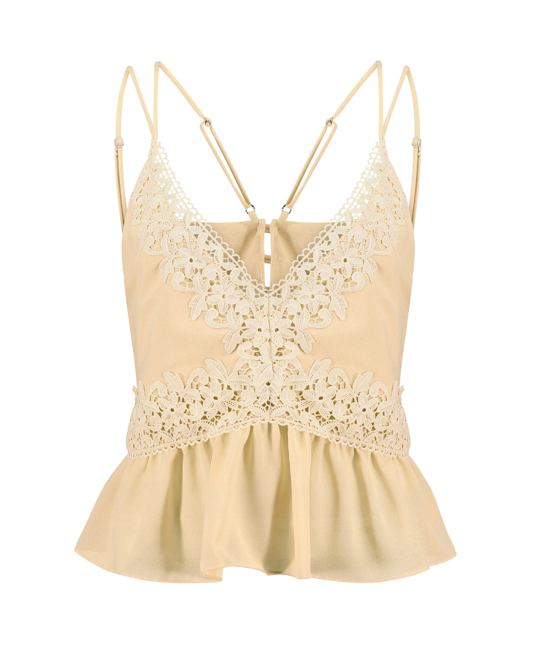 Blusa chiffon com alça regulável detalhe de renda e botões.