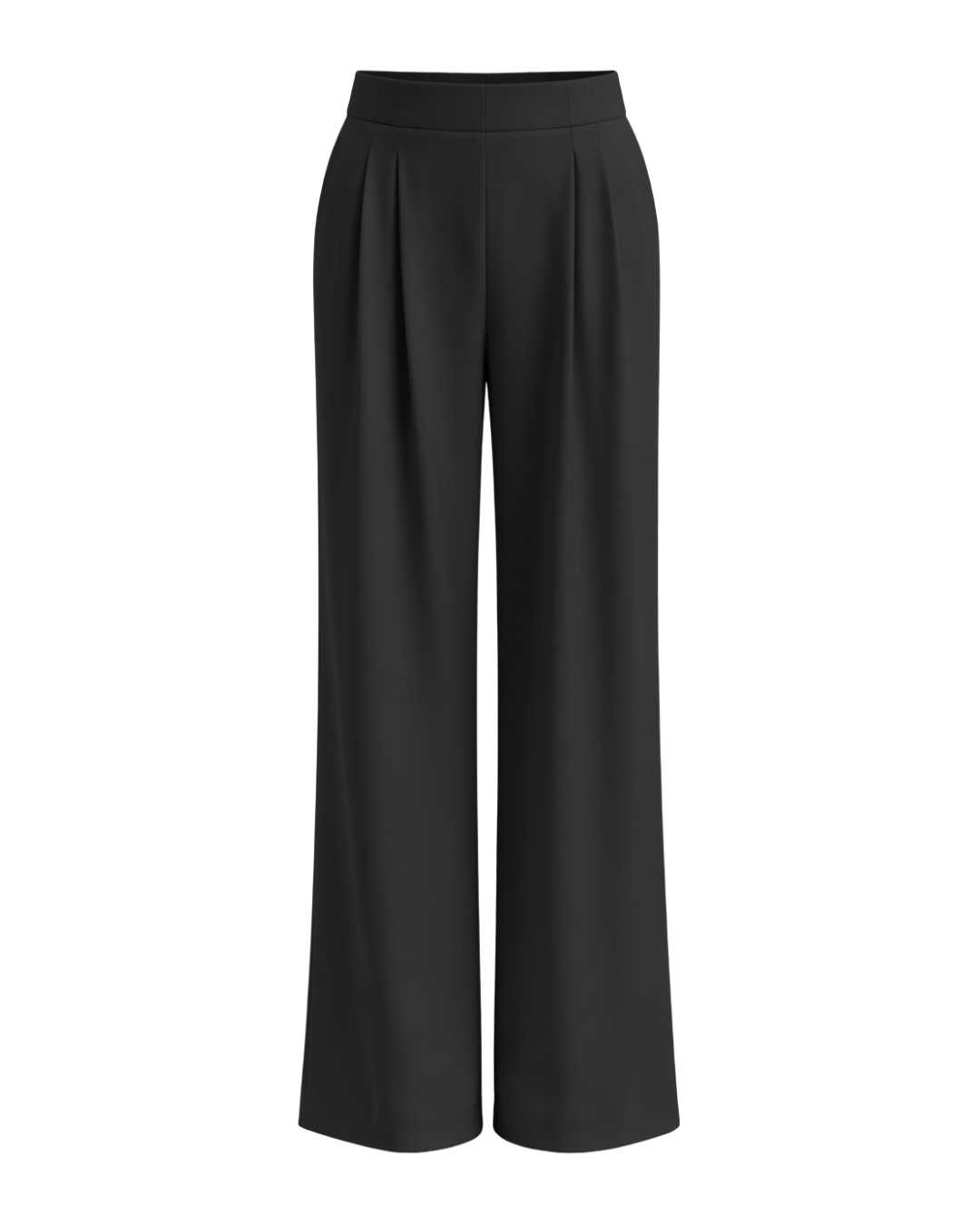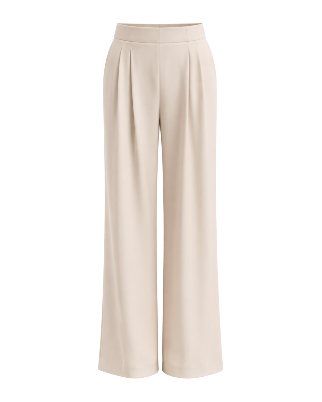 Calça em alfaiataria com cós e elastico atrás pregas frontais.