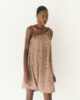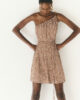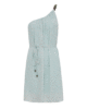Vestido um ombro curto floral, alça regulável de cintura baixa e fechamento em zíper.